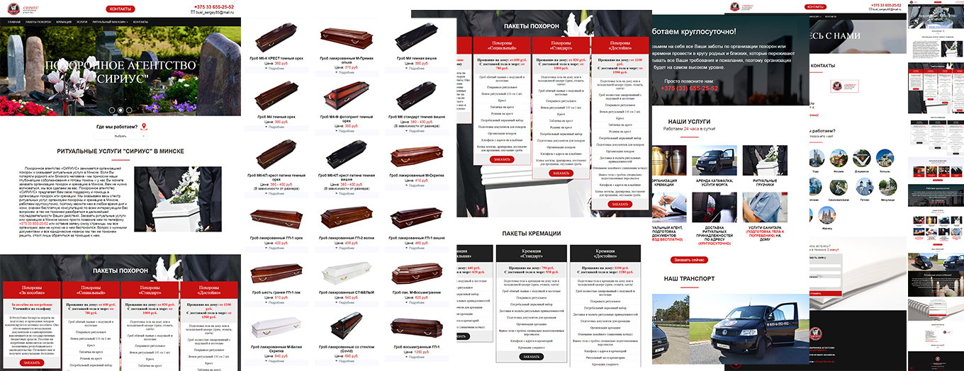 Разработали сайт для похоронного агентства «СИРИУС» в Минске и еще 15 городах. Полноценно проработали и создали дизайн, который подходит для сайта такой тематики. Продвинули сайт в поисковых системах для всех (16-ти) городов, вывели его на первые позици в поисковых системах. Составили семантическое ядро и настроили контекстную рекламу Яндекс Директ. Благодаря качественно проделанной нами работе, клиент получил хороший дополнительный поток клиентов. Всегда делаем свою работу быстро, качественно и в срок!